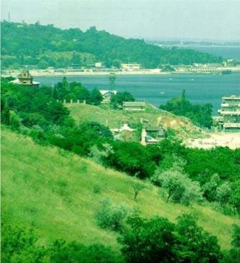 Today Odessa is a city of 1.1 million people. The city's industries include ship building, oil refining, chemicals, metal working and food processing. Odessa is also the home of a Ukrainian naval base and fishing fleets. Odessa is situated on terraced hills overlooking a small harbor. The weather in Odessa is mild and dry with average temperatures in January of -2 C (29 F), and July of 22 C (73 F). Odessa averages only 35 cm (14 in) of precipitation annually. Odessa has many therapeutic resorts. The primary language spoken in Odessa is Russian. Ukrainian, however, is the official language and many advertisements and signs are written in it. The city is a diversity of people including Ukrainian, Russian, Moldavian, Greek, Romanian, Bulgarian, Caucasian, Jewish, Turkish, Vietnamese and so forth. Modern Odessa is a city rebuilding herself, and her downtown is slowly being revitalized. Odessa is well-known as the capital of humor, probably due to the great variety of people and her southern location on the Black Sea. Today, Odessa is referred to as the "Pearl of the Black Sea", "Odessa Mama" and "Southern Palmira" by many.