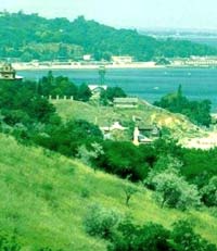 During 1823-1824, the great Russian poet, Alexander Pushkin, lived and wrote in Odessa. During the Crimean War from 1853-1856, Odessa was bombarded by British and French naval forces. As trade grew, so did Odessa and she became the largest grain-exporting port for Russia. In 1866, the city was linked by rail with Kiev and Kharkov as well as Jassy, Romania. In 1905, Odessa was the site of a workers' revolution, supported by the crew of the Russian battleship Potemkin and Lenin's Iskra. Following the Bolshevik Revolution in 1917 during World War I, Odessa was occupied by several groups, including the Central Powers, the French, the Reds and the Whites. Finally, in 1920, the Reds took control of Odessa and united her with the Ukrainian SSR, later becoming part of the USSR. From 1921-1922, Odessites suffered from a great famine that occurred as a result of the War. During the Great Patriotic War (WWII) from 1941-1944, Odessa was occupied by Romanian and German forces, and she suffered severe casualties. Approximately 280,000 Odessites (mostly Jews) were either massacred or deported. Today Odessa is a city of 1.1 million people. The city's industries include ship building, oil refining, chemicals, metal working and food processing. Odessa is also the home of a Ukrainian naval base and fishing fleets. Odessa is situated on terraced hills overlooking a small harbor. The weather in Odessa is mild and dry with average temperatures in January of -2 C (29 F), and July of 22 C (73 F). Odessa averages only 35 cm (14 in) of precipitation annually. Odessa has many therapeutic resorts. The primary language spoken in Odessa is Russian. Ukrainian, however, is the official language and many advertisements and signs are written in it. The city is a diversity of people including Ukrainian, Russian, Moldavian, Greek, Romanian, Bulgarian, Caucasian, Jewish, Turkish, Vietnamese and so forth. Modern Odessa is a city rebuilding herself, and her downtown is slowly being revitalized. Odessa is well-known as the capital of humor, probably due to the great variety of people and her southern location on the Black Sea. Today, Odessa is referred to as the "Pearl of the Black Sea", "Odessa Mama" and "Southern Palmira" by many.